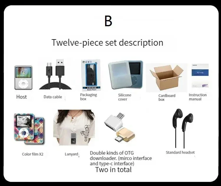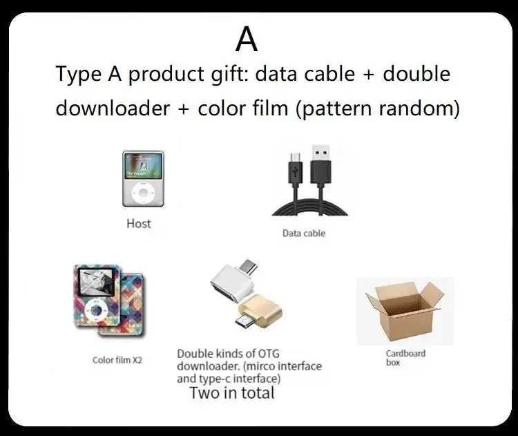 data cable + double downloader + color film+Protective case + headphones + instruction manual