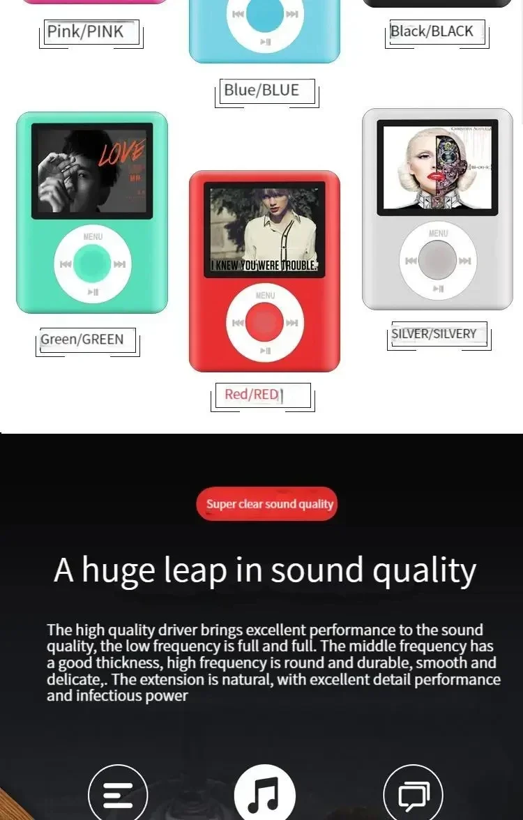 When purchasing MP3 models KT01/KT02, the color of MP3 is random and comes with one KT01/KT02 sticker. Stick the KT sticker on the MP3 and it will have the same effect as the picture.